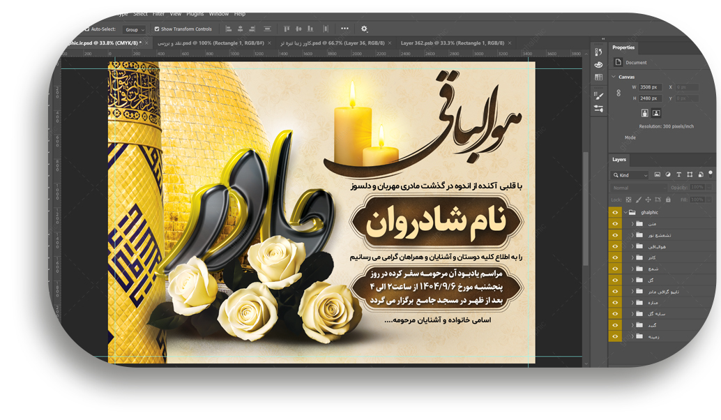اعلامیه ترحیم مادر با طراحی گنبد حضرت عباس(ع) - A4 با کیفیت 300DPI