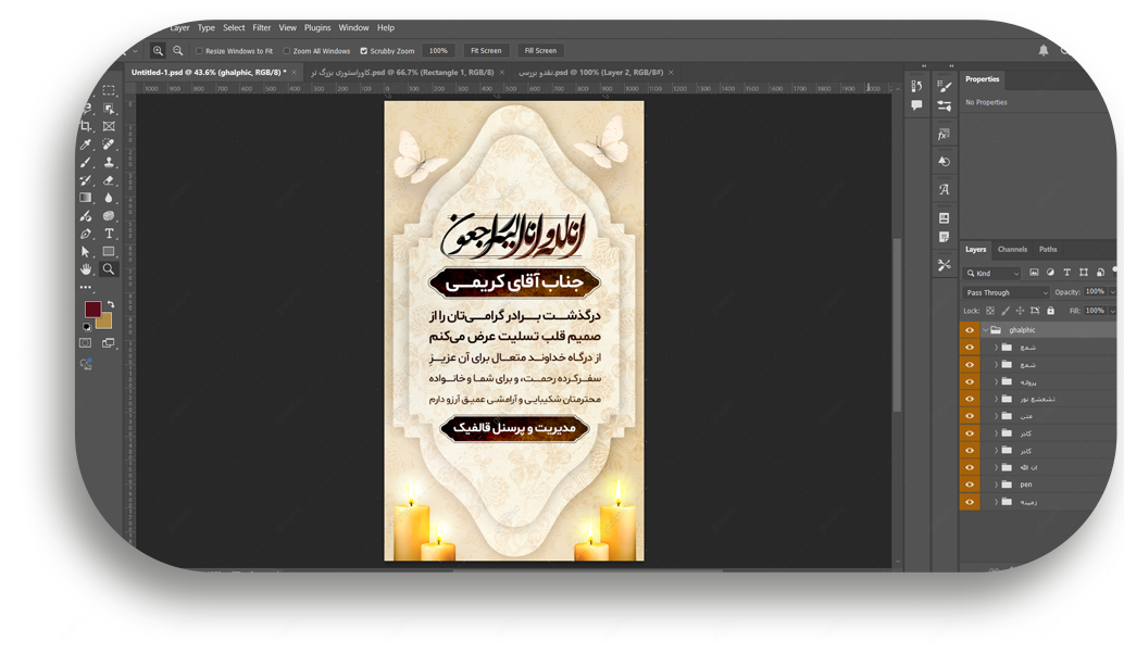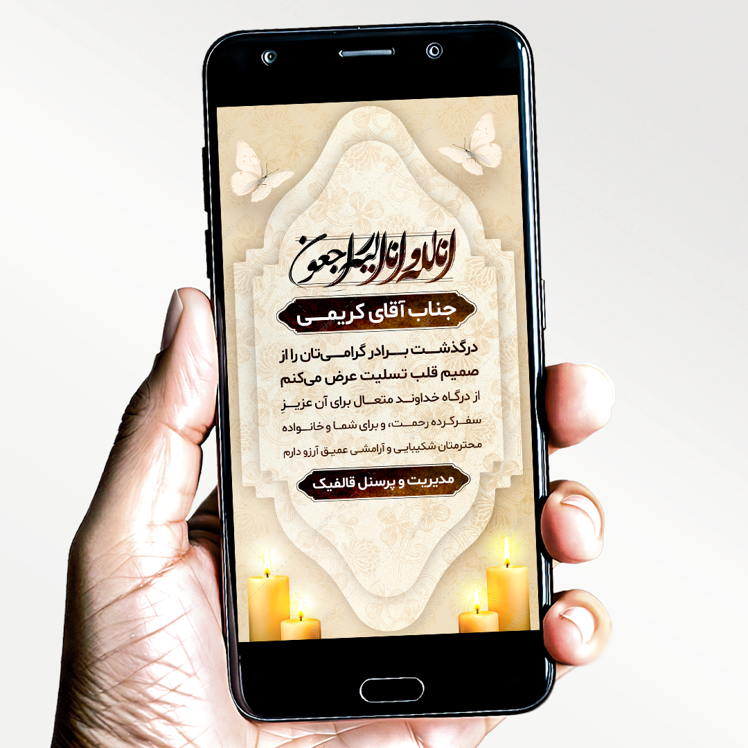 این استوری تسلیت از جهت تسلیت گفتن به فوت برادر همکار دوست آشنا و .... طراحی شده است، طراحی ساده ای داره و سریع تر می تونید ویرایش کنید چون فقط باید متن و ویرایش کنید بکگراند فایل jpg هستش و کادری که بکگراند به صورت لایه لایه در ان ماسک شده به صورت وکتور هستش و اختصاصی طراحی قالفیک هستش و هر چقدر که تمایل داردی می توانید خود کادر رو سایز رو افزایش بدید، این کادر های داخل طرح نیز همگی قابلیش ویرایش 0 تا 100 را دارند متن های نیز کاملا قابل ویرایش هستند، دو تا شمع پایین افکت هایی داخل فتوشاپ بر روی انها انجام دادیم که حتی همان افکت ها را نیز باز گذاشتیم و می توانید ویرایش کنید و نور ها شمع رو می توانید تنظیم کنید دو تا شمع یکی بزرگ و یکی بلند تر و یکی کوتاه تر کنار هم هستند ولی با هم مرج هستند و چسبیده هستند. می توانید این طرح استوری تسلیت را دانلود کرده و سریع ویرایش کنید.
