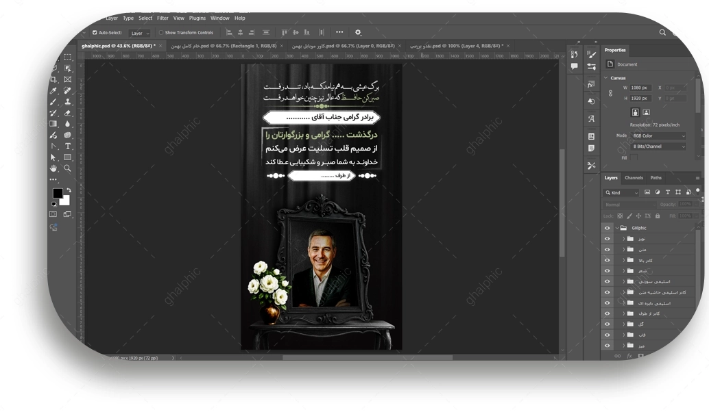 لایه های طرح استوری عرض تسلیت در فتوشاپ