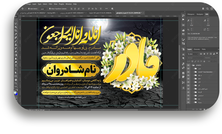برای مشاهده اعلامیه ترحیم مادر با گنبد حضرت عباس و زمینه کرم ( اینجا کلیک کنید https://ghalphic.ir/product/GP165 )