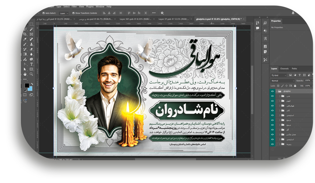 اعلامیه ترحیم جوان (PSD لایهباز)