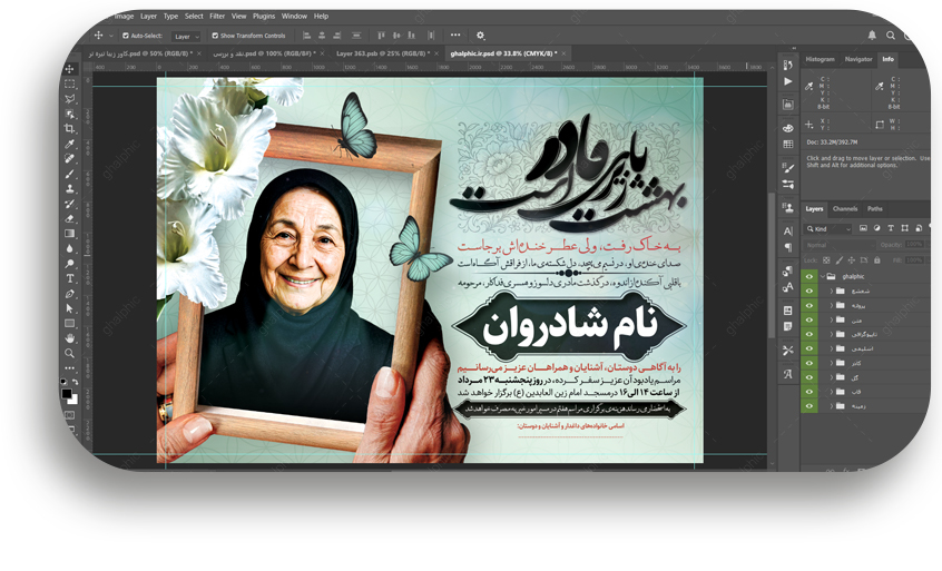 اعلامیه ترحیم مادر با قاب عکس (PSD لایهباز)
