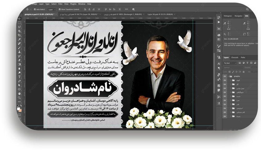 اعلامیه ترحیم پدر با طراحی مشکی و سفید (PSD لایهباز)