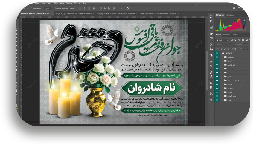 لایه های اعلامیه ترحیم دختر در فتوشاپ