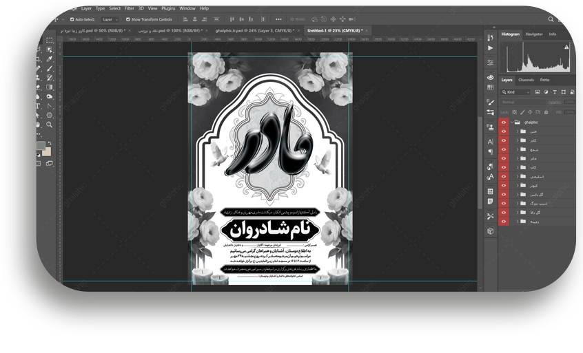 لایه های اعلامیه ترحیم دختر در فتوشاپ