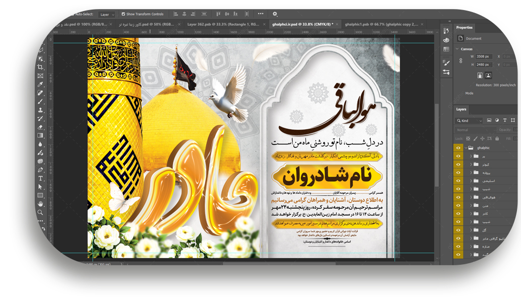 اعلامیه ترحیم مادر با طرح گنبد امام حسین | طراحی لایهباز