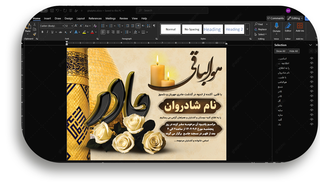برای دیدن اعلامیه ترحیم مادر word با تم شبانه کلیک کنید