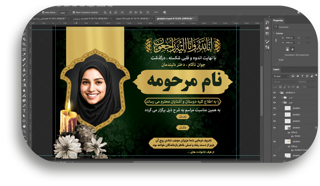 پوشه بندی طرح اعلامیه ترحیم دختر طرح در فتوشاپ